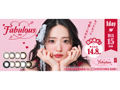 株式会社 Lcode(社長:藤原 智洋、本社:大阪府大阪市)は、レンズ直径15mmの大きめカラコンブランド『Fabulous (ファビュラス)』を2025年5月27日(火)よりリニューアル致します。待望の1dayタイプが遂に発売開始!1monthタイプには新色が追加すると共に、ロゴ・パッケージデザインも一新。最大級※に可愛く盛れるFabulousが更にパワーアップします。