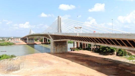 東南アジア・ミャンマーで、新たな交通インフラとして架橋されたジャイン・コーカレー橋。当社は設計で参画。PC3径間連続波形鋼板ウェブエクストラドーズド橋という先端技術を活かし、現地社会の発展に寄与しました。橋長は380メートル。
