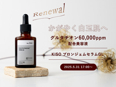 「高品質・高配合・適正価格」をモットーに化粧品の製造・販売を行う株式会社基礎化粧品研究所 KISOCAREのグルタチオン配合美容液がリニューアル。グルタチオンの濃度が60,000ppmにアップした「キソ ブロンジェムセラムGL 30ml」を、2025年5月31日17時スタートのQoo10メガ割より発売します。