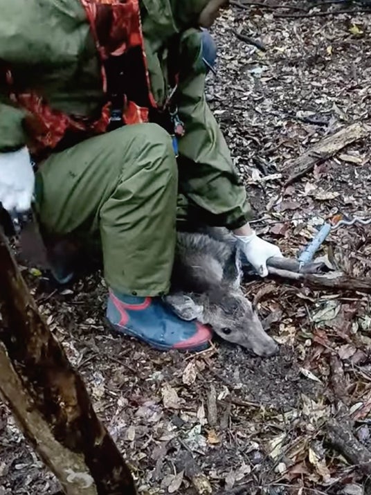 1人の小学生が仕掛けた罠で鹿の捕獲に成功しました。かかったのは推定1歳のメスの子鹿。まだ顔にあどけなさが残る可愛らしい個体です。