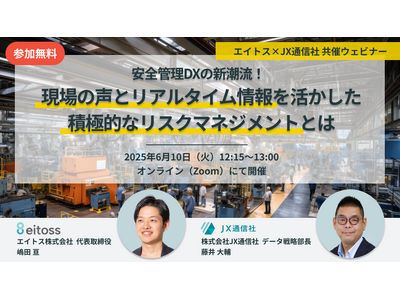防災DXを推進する報道ベンチャーの株式会社JX通信社(東京都千代田区、代表取締役 米重 克洋、以下「JX通信社」)と、エイトス株式会社(愛知県豊田市、代表取締役社長 嶋田 亘、以下「エイトス」)は、6月10日(火)に共催ウェビナーを開催することをお知らせします。