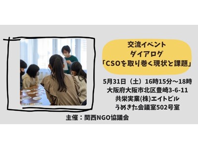 特定非営利活動法人関西NGO協議会(本部:大阪市北区 代表:三輪敦子)は、関西で様々な社会課題に取り組む市民社会の連携を促進するため、CSO(市民社会組織)のゆるやかなネットワークをつくる会を発足。大阪市内にて5月31日(土)に対面イベントを開催。参加者を募集しています。