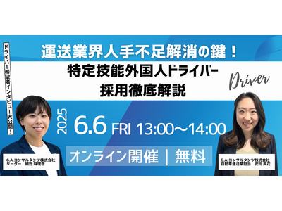 『運送業界人手不足解消の鍵!特定技能外国人ドライバー採用徹底解説』オンラインセミナー- G.A.コンサルタンツ主催、6/10(火)に開催