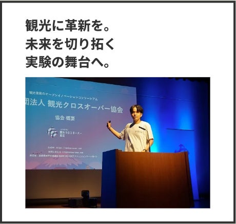 一般社団法人観光クロスオーバー協会全国各地に観光イノベーションの実証実験フィールドを設置。地域と先進的なアイデアをつなぎ、観光サミットやコンテストを通じて、新しい観光の形を創造。地方自治体や企業と連携し、日本の観光産業に革新的な変革をもたらします。