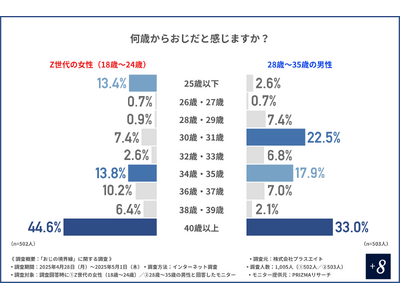 Z世代の女性の目には、「おじ」と見える年齢のラインがやや遠く、28歳~35歳の男性自身はより早い段階で危機感を抱いていることがうかがえます。