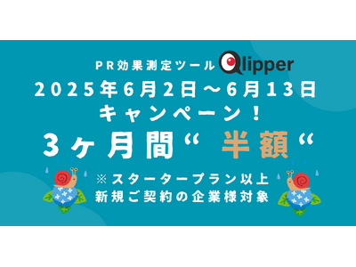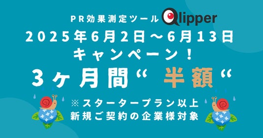 株式会社トドオナダ(本社:東京都台東区、代表取締役:松本泰行)は、PR効果測定サービス「Qlipper」において、スタータープラン以上のプランをご契約で3ヶ月間半額となる期間限定キャンペーンを2025年6月2日(月)から2025年6月13日(金)まで実施いたします。本キャンペーンは、PR施策の可視化や競合メディア分析を始めたい企業様向けの内容となっております。お問い合わせURL: