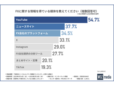 合同会社WOZ(所在地:東京都渋谷区、代表社員:小畑 和彰)は、FX取引をしている方を対象に、「投資系インフルエンサー信頼度ランキング」に関する調査を実施しました。