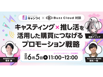 本ウェビナーでは、SNSキャンペーンツール「キャンつく」と、声優やVTuberのキャスティング支援を行う「BuzzCloud」の2社が、“キャスティング×推し活”を組み合わせた最新のプロモーション戦略を対談形式で深掘りします。