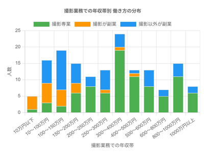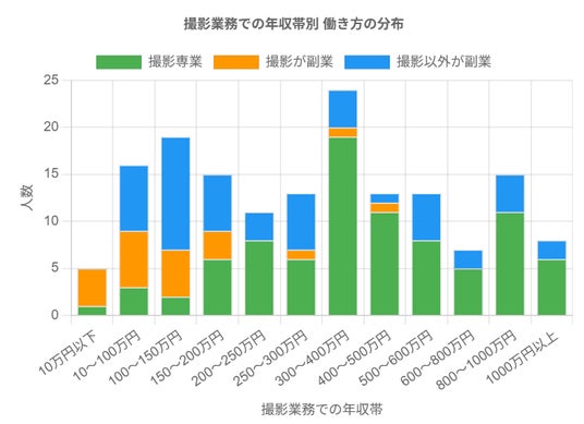 今回の調査では、撮影を専業とするフォトグラファーと、副業として取り組むフォトグラファーの間で、
