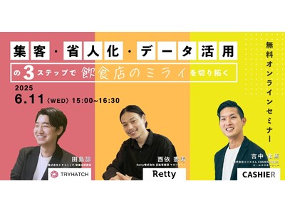 Androidタブレット端末を利用したクラウドPOSレジ「CASHIER」を提供する株式会社ユニエイム(本社:東京都渋谷区、代表取締役社長:原口 宇志)は、株式会社ベクトル(本社:東京都港区、代表取締役会長兼社長:西江 肇司、東証プライム:6058)の子会社である株式会社トライハッチ(東京都新宿区、代表取締役社長:武藤 尭行)とRetty株式会社(東京都港区、代表取締役 執行役員CEO:武田 和也)と共同で、飲食業界を対象とした無料オンラインセミナー「集客・省人化・データ活用」の3ステップで飲食店のミライを切り拓くを2025年6月11日(水)15:00より開催いたします。