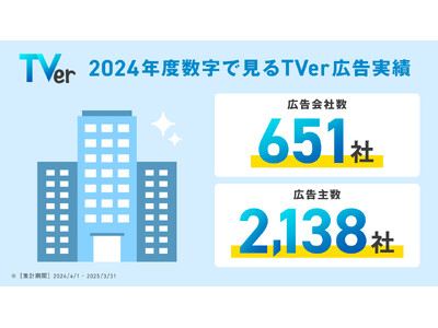 株式会社TVer(本社:東京都港区、代表取締役社長:若生伸子)は、2024年度(2024年4月~2025年3月)の「TVer広告」(※1)の実績を振り返る「数字で見るTVer広告」を公開しました。