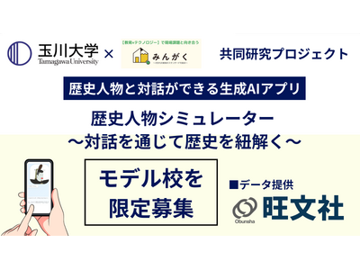 みんがく、旺文社のデータに基づき歴史上の人物と対話ができる生成AIアプリ「歴史人物シミュレーター」の実証実験モデル校の募集を開始 ~玉川大学濱田研究室との共同開発~