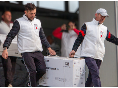 医療用物資はルーマニア・ブカレストにて調達し、トラックで国境を越えてウクライナへ輸送。病院に搬入し、必要な取り付け作業を行います。