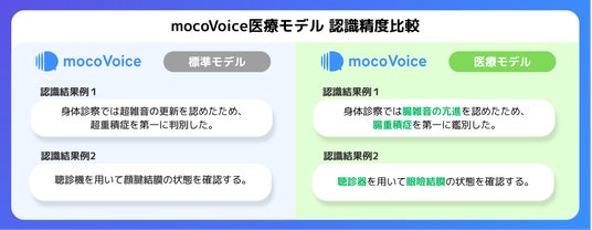 このような背景のもと、医学用語への対応と学習による精度向上に強みを持つ「mocoVoice」の医療モデルにご関心をお寄せいただき、本連携が実現いたしました。