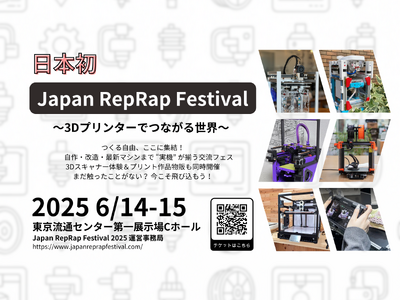 Japan RepRap Festival 2025 運営事務局は、3Dプリンター愛好家のための祭典「Japan RepRap Festival 2025」を2025年6月14日(土)・15日(日)に東京流通センター展示ホールCにて初開催することをお知らせいたします。本イベントは、海外発祥の「RepRap」文化を日本に広げ、自作3Dプリンター(FFF/FDM方式)から家庭向け最新モデルまで幅広い3Dプリンティング技術の展示と交流の場を提供します。