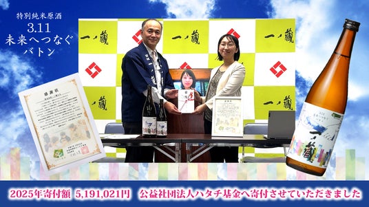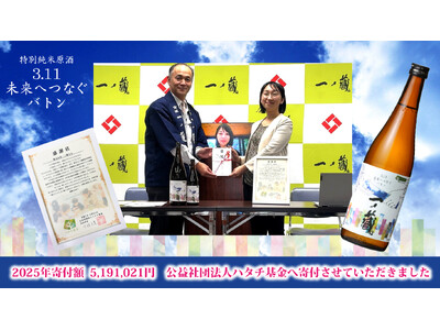 株式会社一ノ蔵(宮城県大崎市松山 代表取締役社長 鈴木 整)は、本年2月12日に発売した「一ノ蔵特別純米原酒3.11未来へつなぐバトン」の出荷完了を受け、5月22日に公益社団法人ハタチ基金へ売上金の全額を寄付いたしました。
