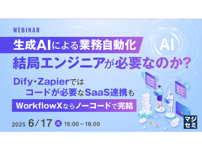 マジセミ株式会社は「生成AIによる業務自動化、結局エンジニアが必要なのか?」というテーマのウェビナーを開催します。