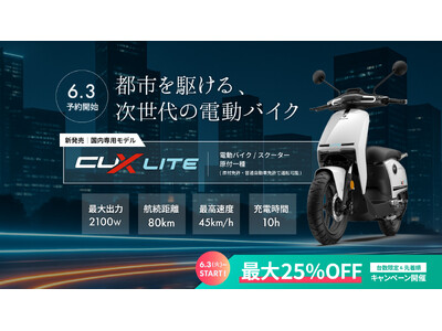 オーストラリア発の電動バイクブランド「Vmoto(ブイモト)」の最新モデル『CUX Lite』が、日本初上陸。2025年6月3日(火)9:00より、XEAM公式サイトにて先行予約受付を開始いたします。