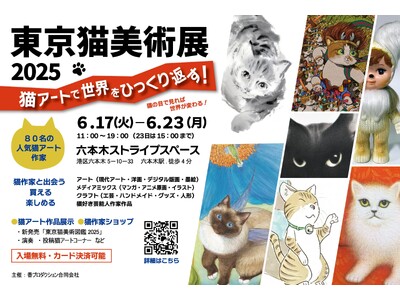 香プロダクション合同会社(本社:東京都中央区、代表:鋤柄よし子)は、2025年6月17日(火)から6月23日(月)まで、六本木ストライプスペース(東京都港区)にて「東京猫美術展2025」を開催いたします。