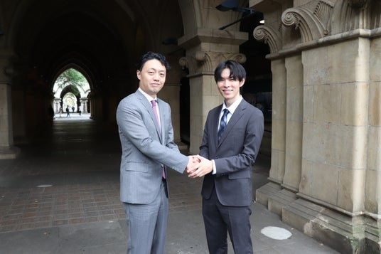 当社技術顧問の松尾豊教授(左)と代表の阿部武(右)