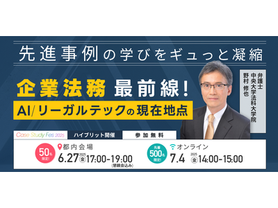 「Case Study Fes」は、各業界の先進事例を紹介し、参加者が“次の一歩”を踏み出すヒントを得られる場として企画されたイベントシリーズです。過去開催では2,000名超からのお申し込みがありました。第4回となる今回は、法務部門や経営層が注目するリーガルテックとAI活用にフォーカスします。