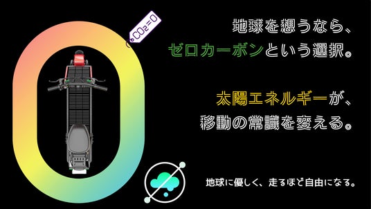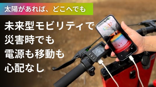 非常時のライフライン: 太陽光がある限り走行・給電が可能なため、大規模停電や交通網の寸断時にも、個人の移動手段として機能するだけでなく、スマートフォンや照明、小型家電など、