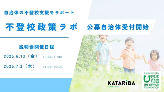 認定特定非営利活動法人カタリバ(本部:東京都中野区、代表理事:今村久美、以下カタリバ)は、日本財団(本部:東京都港区、 会長:笹川陽平)と協力して、自治体の不登校政策への伴走支援を行う「不登校政策ラボ」を発足。新たに連携する自治体の募集を開始したのでお知らせします。