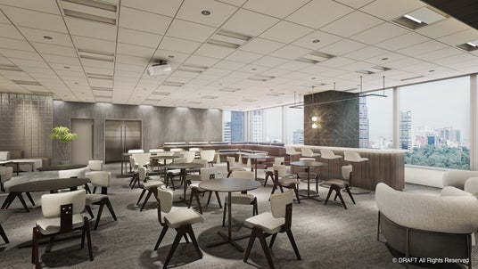 80名程度が集まれるスペースの「FLUX LOUNGE」を新たに設けました。イベントの実施など、社内外での交流を積極的に行っていきます。
