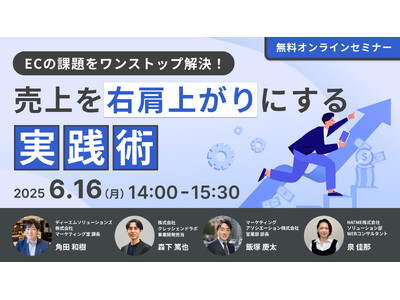マーケティングアソシエーション株式会社の子会社であるHATME株式会社(本社:東京都台東区 代表取締役:中園広和、以下当社)は2025年6月16日(月)に、株式会社クレッシェンドラボとディーエムソリューションズ株式会社とマーケティングアソシエーション株式会社と4社共催ウェブセミナー「ECの課題をワンストップ解決!売上を右肩上がりにする実践術」を、開催いたします。