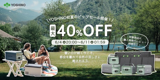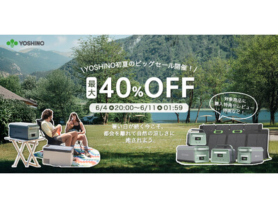 世界で初めて三元固体電池を搭載したポータブル電源を開発した株式会社ヨシノパワージャパン(東京都中央区、以下「ヨシノ」)は、2025年6月4日(水)20:00から6月11日(水)01:59まで、楽天市場で開催される「楽天スーパーセール」に参加し、「YOSHINO初夏のビッグセール」を開催します。本セールではヨシノの固体電池ポータブル電源およびソーラーパネルを最大40%オフで販売。アウトドアや災害時の電力確保をサポートする高性能な製品を、特別価格でお届けします。