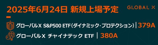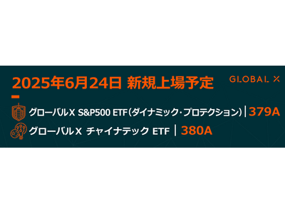 大和証券グループのGlobal X Japan株式会社(東京都千代田区、代表取締役社長:藤岡 智男、以下「当社」)は、本日、東京証券取引所より「グローバルX S&P500 ETF(ダイナミック・プロテクション)」【379A】と「グローバルX チャイナテック ETF」【380A】の上場の承認がなされたことをお知らせします。