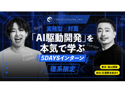 クリエーションラインはお客様の課題に向き合い、IT技術を駆使したソリューションを提供しています。今回のインターンシップでは、インターンシップ用に設計したWebアプリケーションでのシステム構築の課題を通して、生成AIを駆使したAI駆動開発を5日間で体験できるプログラムになっています。