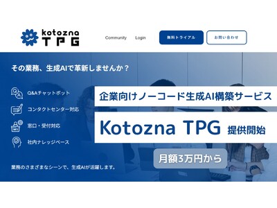 Kotoznaでは、2025年6月3日(火)より、こうした高性能な生成AIチャットボットをノーコードで自社構築できる「Kotozna TPG(Tailored Prompts Generator)」を提供開始します。