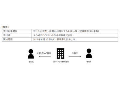 SOMPOひまわり生命保険株式会社(代表取締役社長:久米 康樹、以下「当社」)は、2025年6月10日から、健康寿命の延伸に寄与する新たな取組みとして、取引先の皆さまへの祝花・祝電に代えて、国立長寿医療研究センターへの寄付を実施するプログラムを開始します。