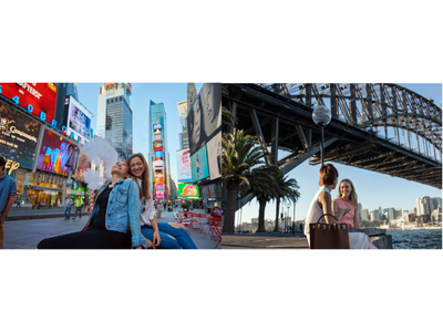 渡航先となる米ニューヨーク(左)と豪シドニー(右)