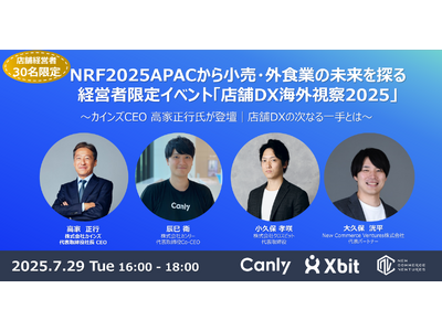 New Commerce Ventures株式会社(本社:東京都品川区、代表取締役:松山 馨太・大久保 洸平、以下 NCV)、株式会社カンリー(本社:東京都品川区、代表取締役:辰巳 衛/秋山 祐太朗、以下 カンリー)、および、株式会社クロスビット(本社:東京都千代田区、代表取締役:小久保 孝咲、以下 クロスビット)の3社は、2025年7月29日(火)、小売・外食業の経営層を対象とした限定イベント「店舗DX海外視察2025」を共同開催いたします。