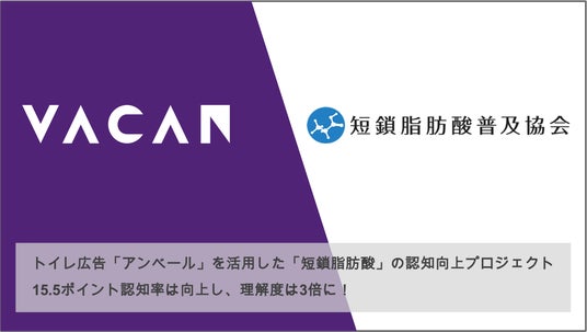 この“認知と理解のギャップ”を埋めるべく、短鎖脂肪酸普及協会とバカンは、腸活に関連する情報の発信に最適な空間であるトイレ広告「アンベール」を活用し、短鎖脂肪酸の理解度向上を目指した共同プロジェクトを実施しました。