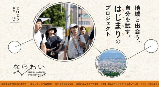 奈良市は、地元企業3社の新規事業にチャレンジするプログラム「ならわい」の参加者を全国から募集します。参加者が地元企業の新規事業開発に取り組むことで、奈良で働く・暮らすことを体験し、将来の移住や起業への機会を創出することを目的としています。募集開始に伴い、6月25日(水)に東京で連動イベントの開催、6月27日(金)、7月2日(水)、7日(月)にオンラインでプログラム説明会を開催します。本プログラムは、奈良市の創業支援施設BONCHIを運営する一般社団法人TOMOSU(トモス、奈良県奈良市)が事務局を務めています。