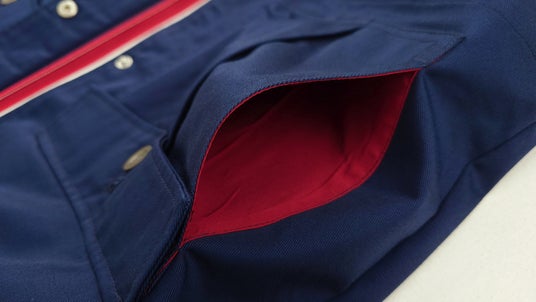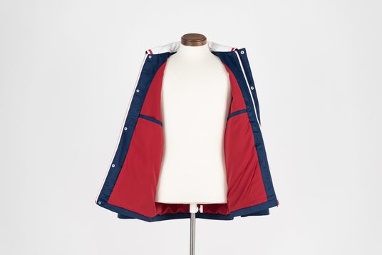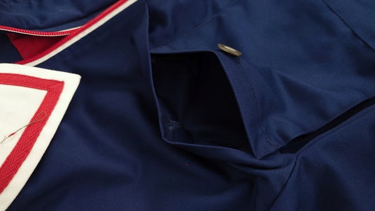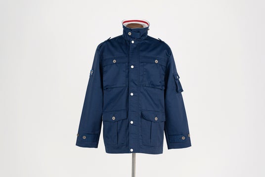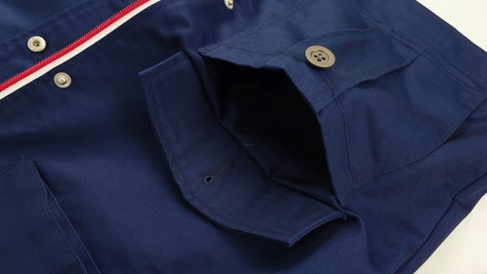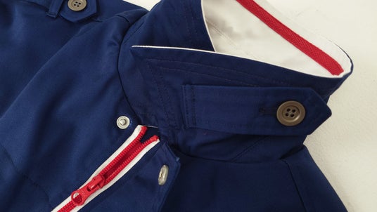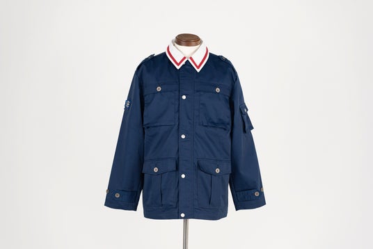 昼夜の寒暖差が大きい大洗の気候にも対応できるよう重ね着を前提としたライトアウターとなっており、風を通しにくい比翼仕立ての前立てに加え、首元の防寒性を高めたいときには襟を立ててチンストラップで留めることもでき、また、袖口には2段階調整が可能なボタンを設けていますので、隙間を絞ることで冷気の侵入を防ぐ工夫も施されています。