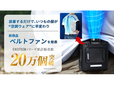「本当に必要とされる商品を世界に流通させる」という理念のもと、数多くのベストセラー商品を世に送り出してきた株式会社Extage(大阪市中央区、代表取締役社長:野口拳大、以下「Extage」)は、シリーズ累計販売個数20万個を突破している当社が手がけるブランド「EXCITECH(エキサイテック)」から、腰に装着するだけで真夏の不快感を軽減する送風機「ベルトファン」を2025年5月10日より発売いたしました。