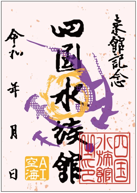 四国水族館は、香川県善通寺市で誕生し、「三筆」として知られる弘法大師空海の筆跡を使ったデザインの魚朱印を2025年6月1日(日)から期間限定で販売しています。