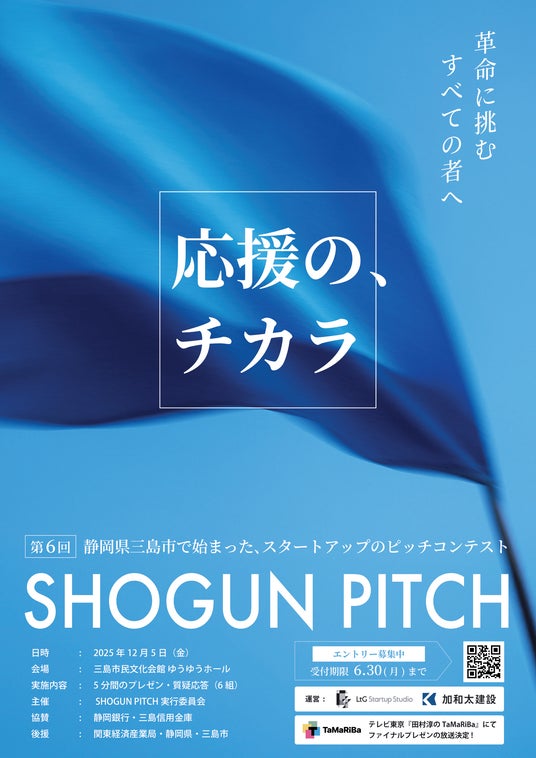 静岡県三島市に拠点を構えるスタートアップスタジオLtG Startup Studio(運営:加和太建設株式会社、代表:河田亮一)は、起業家たちのチャレンジを地域の企業と連携し、まちを巻き込んで応援するべく、ピッチコンテスト「SHOGUN PITCH 2025」を2025年12月5日に開催いたします。