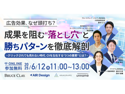 本ウェビナーでは、「広告効果が頭打ちになる3つの構造的な落とし穴」を起点に、各分野のプロフェッショナルが実践で培った独自のノウハウと成功事例を公開。