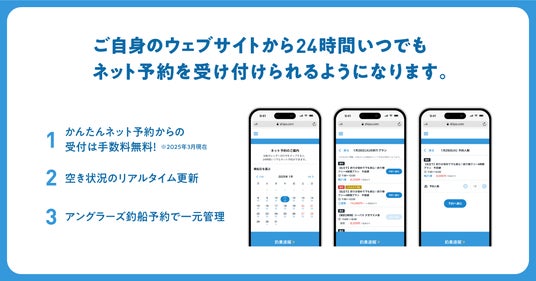 これを受け、アングラーズでは、以下の2つの機能を新たに搭載し、Webサイト不要の「ネット予約管理機能」の無料提供(※1)の開始に至りました。