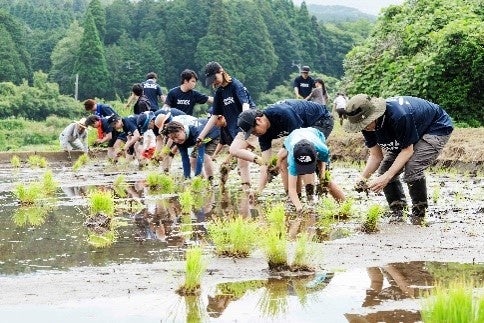 NOK株式会社(本社:東京都港区芝大門、代表取締役 社長執行役員 グループCEO:鶴 正雄、以下「NOK」)は、地域の地下水保全活動の一環として、公益財団法人 くまもと地下水財団が実施する「水田オーナー制度」に2019年から6年連続で協賛し、参画しています。6月7日(土)、NOK熊本事業場(熊本県阿蘇市)の社員とその家族計55人が、オーナーである熊本県菊池郡大津町の水田で、地域の生産者の皆様と共に田植えの作業を行い、今年の米作りを開始しました。
