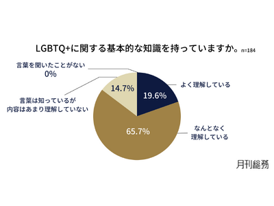 日本で唯一の総務専門誌『月刊総務』を発行する株式会社月刊総務(所在地:東京都千代田区、代表取締役:豊田健一)は、全国の企業を対象に「LGBTQ+に関するアンケート調査」を実施し、184名から回答を得ました。