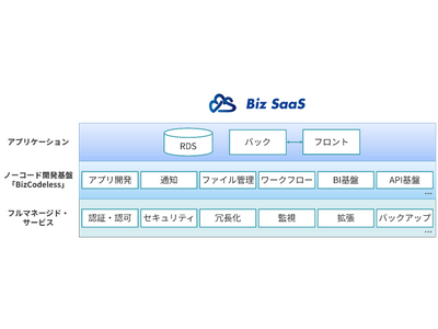 この度、富士ソフトは株式会社システムインテグレータと共同出資による新会社、「株式会社BizSaaS」を設立し、BizSaaSの製品開発を本格的に開始します。BizSaaSとは、中堅・大企業を主な対象としたクラウドネイティブなERPです。株式会社システムインテグレータが独自開発した業務専用ノーコード開発基盤「BizCodeless」を中核に据え、基盤上に、業界・業種ごとの実務に即した業務アプリケーションを構築・展開します。