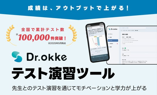 okkeは、「誰もが能動的に学ぶ世の中を作る」というビジョンのもと、中高生向け学習アプリ「okke」および教育機関向けテスト作成ツール「Dr.okke」を提供しています。特に「Dr.okke」は、先生が1分でテストを作成できるツールとして、学習塾や通信制高校での導入が進んでおり、リリースから約2年半で累計受験数が100,000件を突破するなど、急速な成長を遂げています。