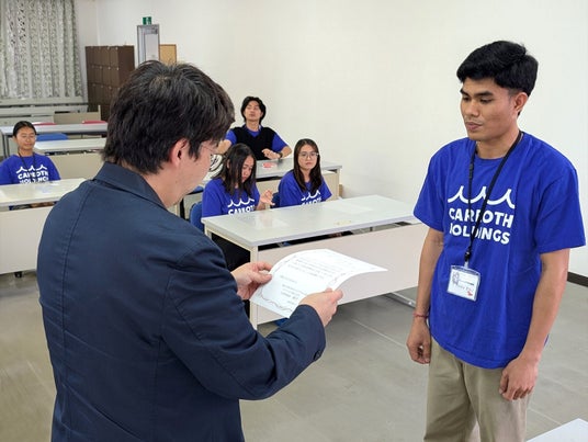 キャレオス株式会社が実施する講座はその通信講座であり、日本に入国後スクーリングを実施した。