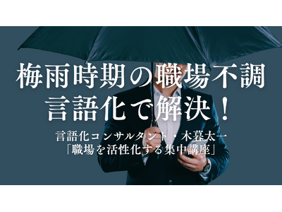 特別講座「職場を活性化する言語化集中講座」を緊急開催します。これは、67冊の著作を持つ、言語化コンサルタントの木暮太一が講師を務め、従来の「言語化プログラム研修」のエッセンスを凝縮し、梅雨時期特有の心身の不調と、それに伴う職場の「言えないストレス」を解消することに特化した実践型プログラムです。